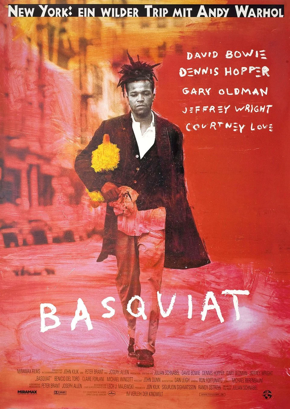 Basquiat (1996) is a freely adapted feature-film account of Jean-Michel Basquiat’s meteoric rise from downtown NYC to global art icon. Directed by Julian Schnabel and featuring Jeffrey Wright in a breakout role, the film blends fact and fiction to portray the vibrant chaos of Basquiat’s world. Anchored by an all-star cast—including David Bowie, Gary Oldman, and Benicio Del Toro—it captures the explosive energy of the 1980s art scene. Produced by Miramax Films and Jon Kilik; a Peter Brant, Joseph Allen production. 106 minutes. Originally released in 1996. Video edition distributed by Buena Vista Home Entertainment in 2002. Soundtrack by John Cale. // Learn more